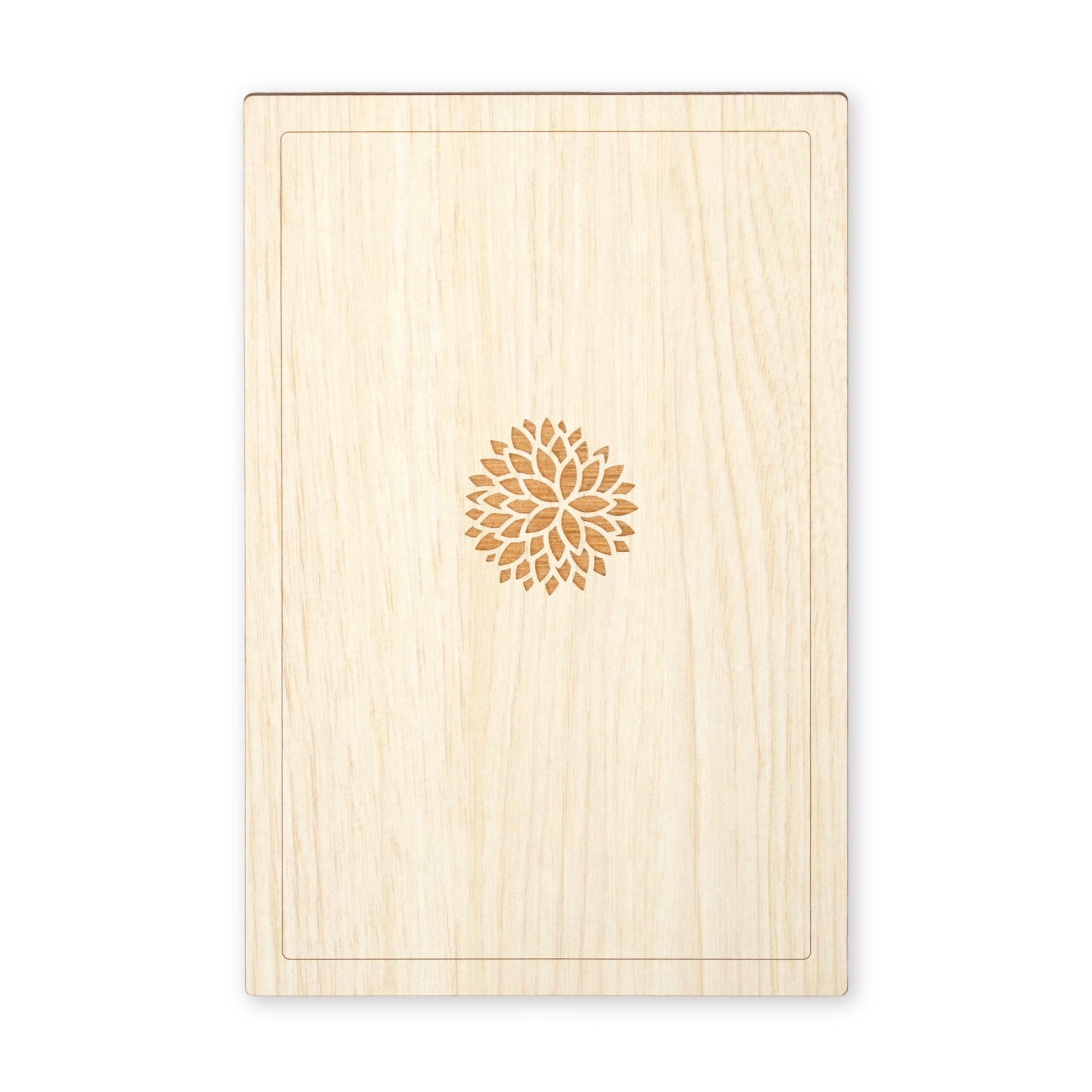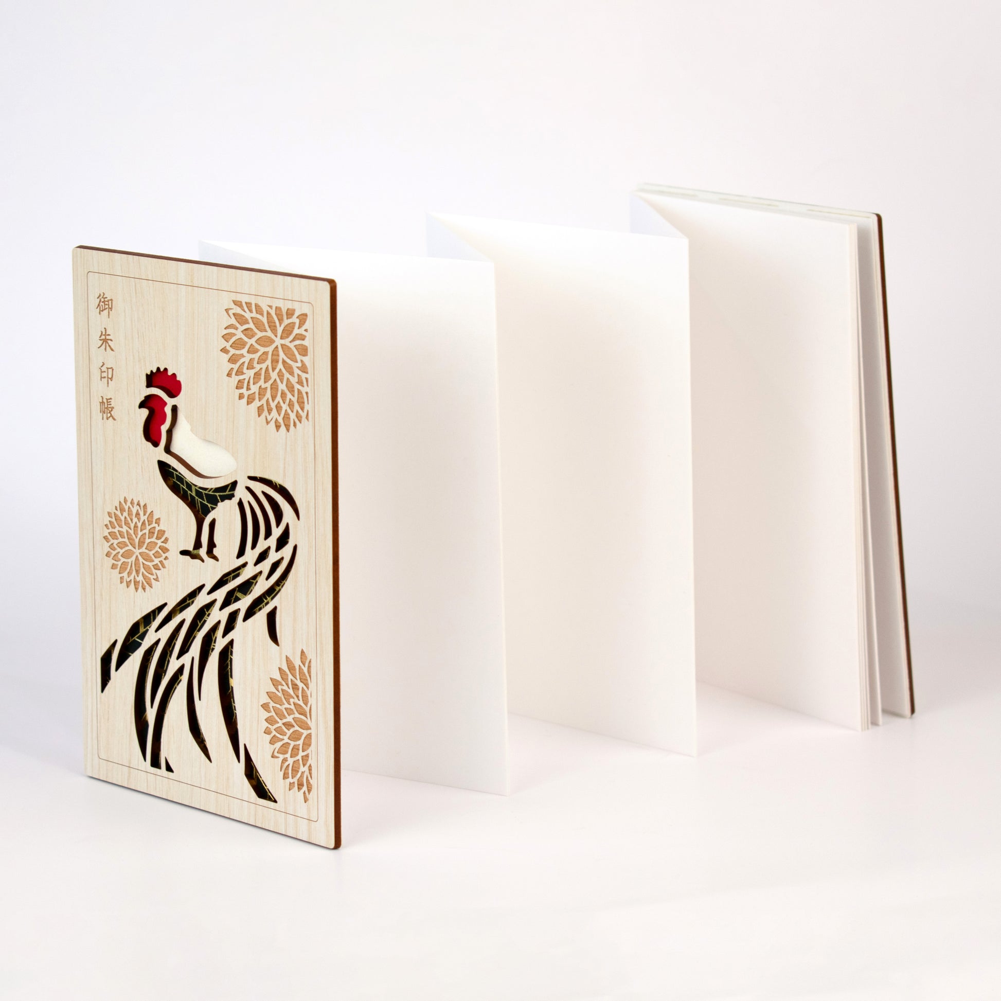 レーザー加工を施した木素材で表紙を仕立てました。