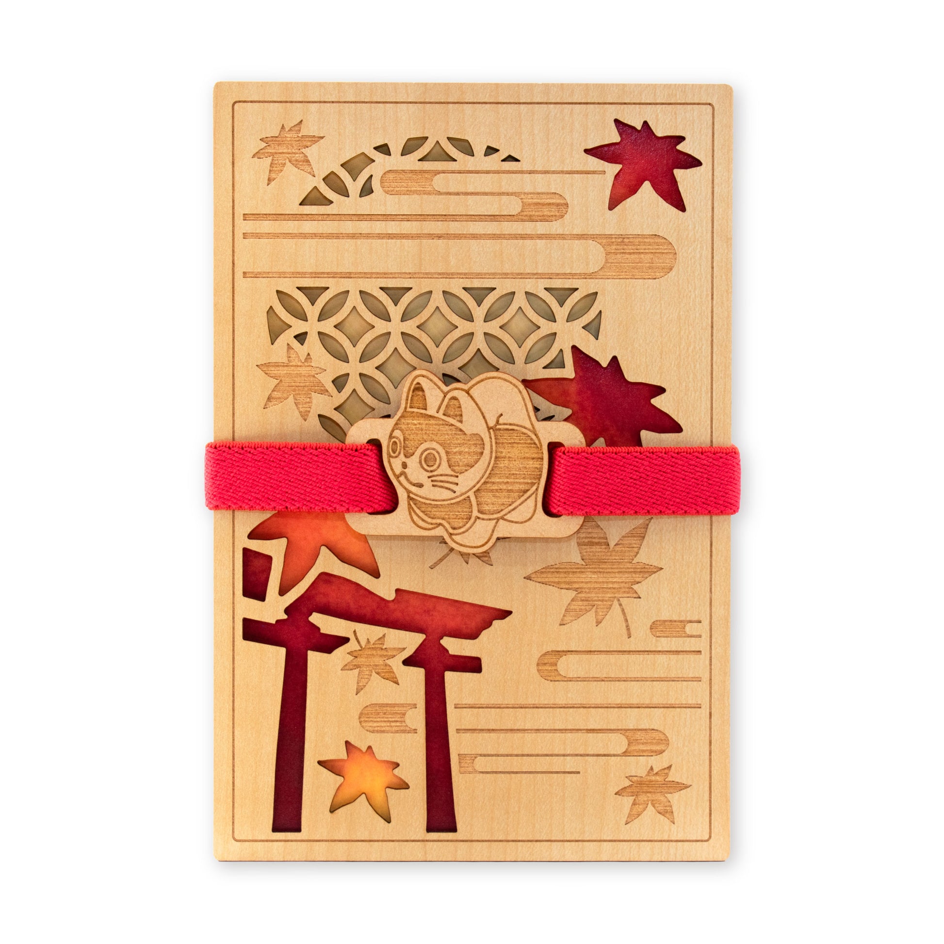 Ce bracelet goshuincho présente des pièces découpées au laser impressionnantes et du caoutchouc coloré.