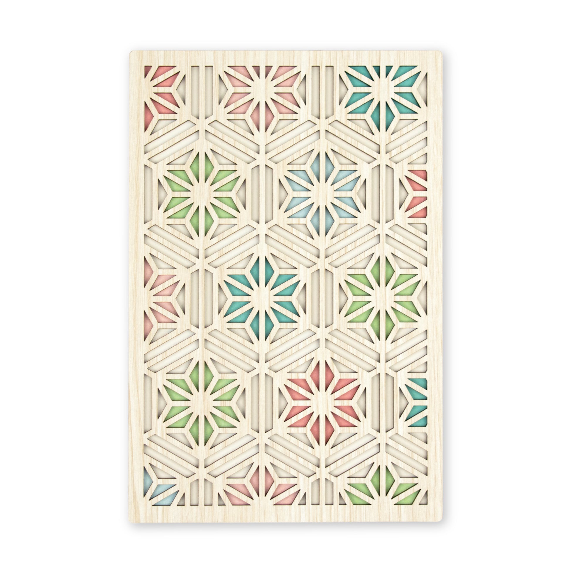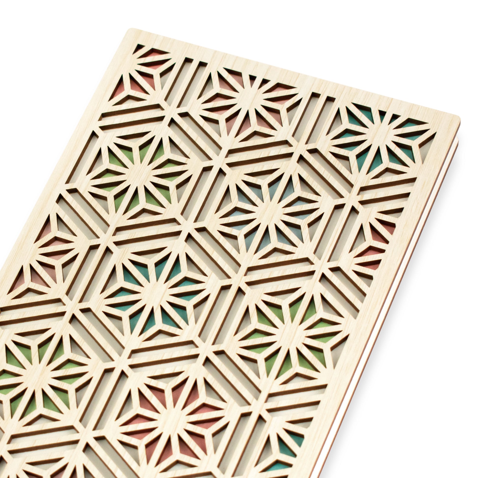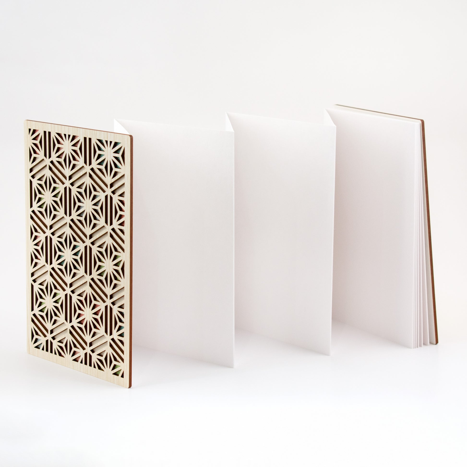 レーザー加工を施した木製素材で表紙を仕立てました。