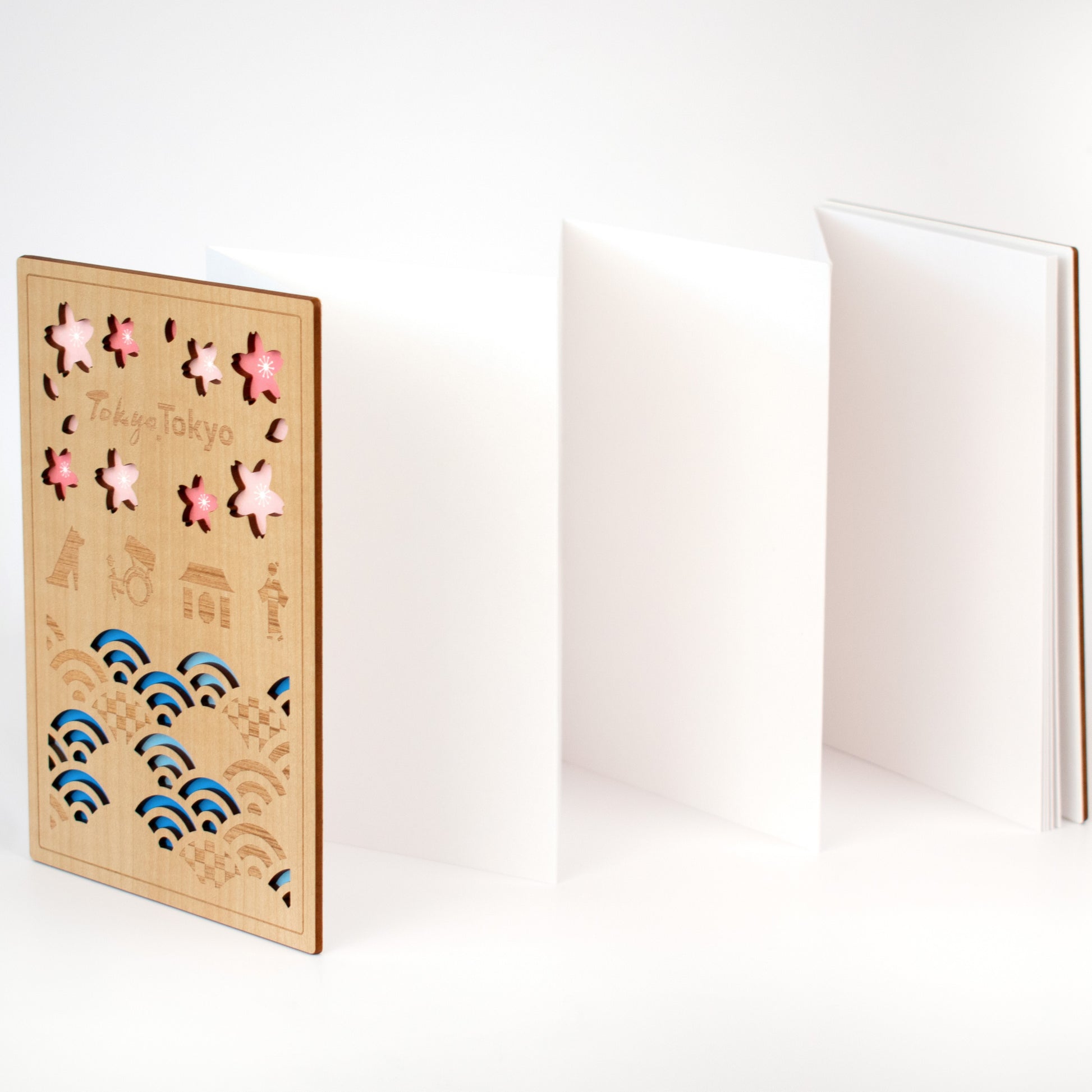 東京の名所と伝統的な七宝柄をレーザー加工で施した、"Old meets New" な御朱印帳です。