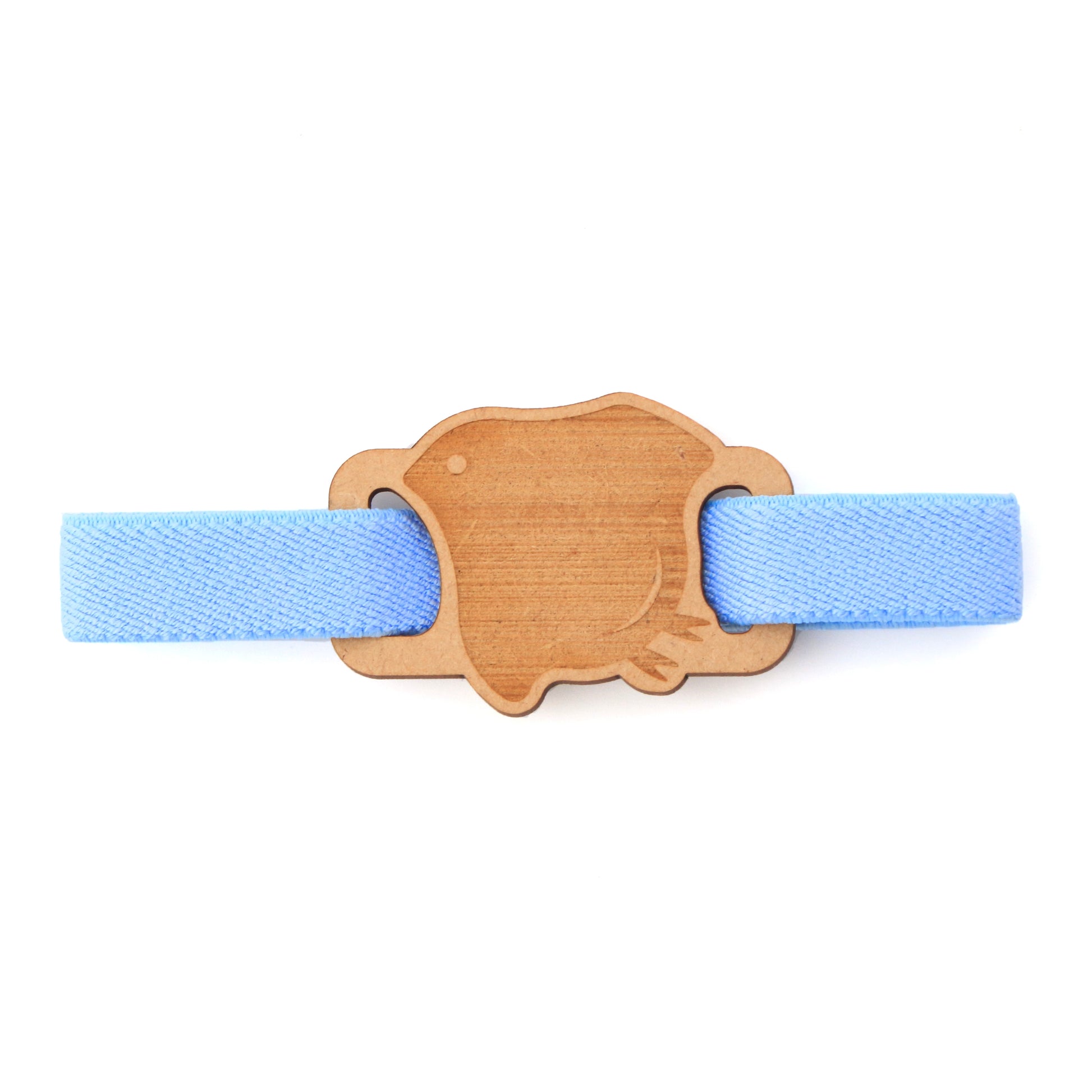 レーザー加工を施したパーツとカラフルなゴムの色が印象的な御朱印帳バンド。