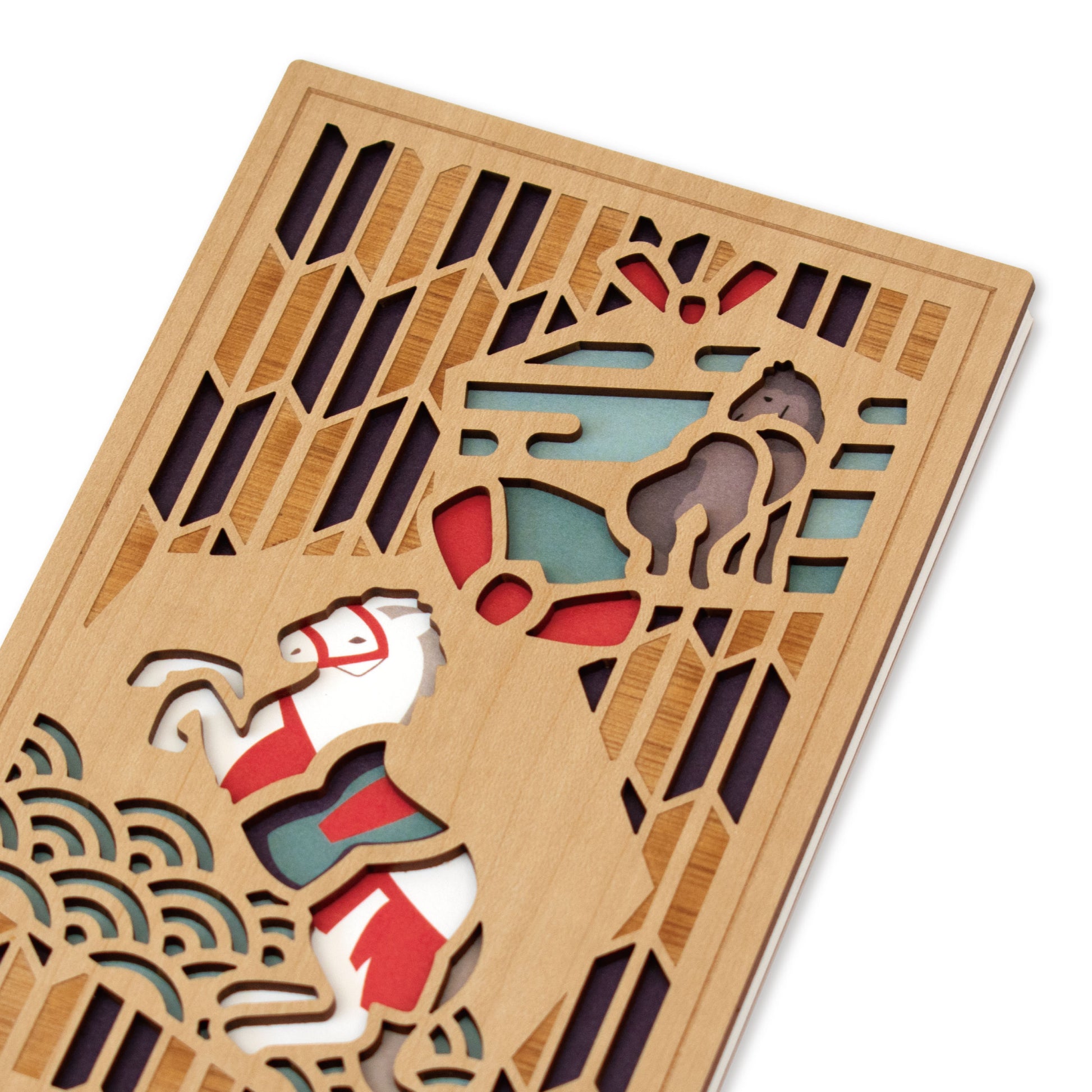 2026年の干支・馬が駆ける絵馬。矢絣柄にのせて、大きな幸せへと走り出す一冊