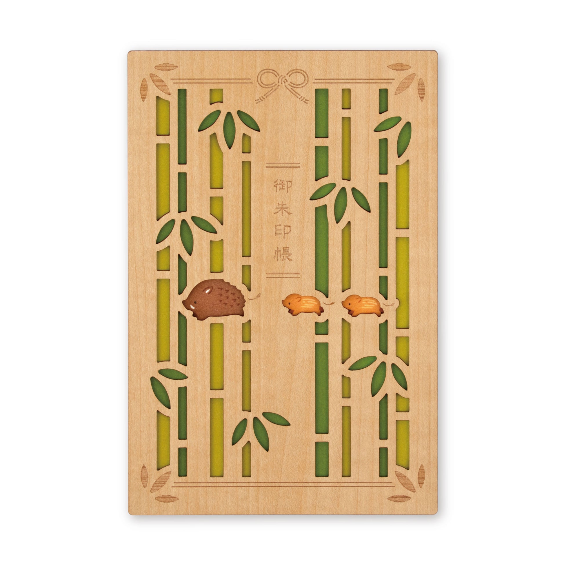 生命力を象徴する竹と猪を可愛らしくあしらった、縁起の良い一冊