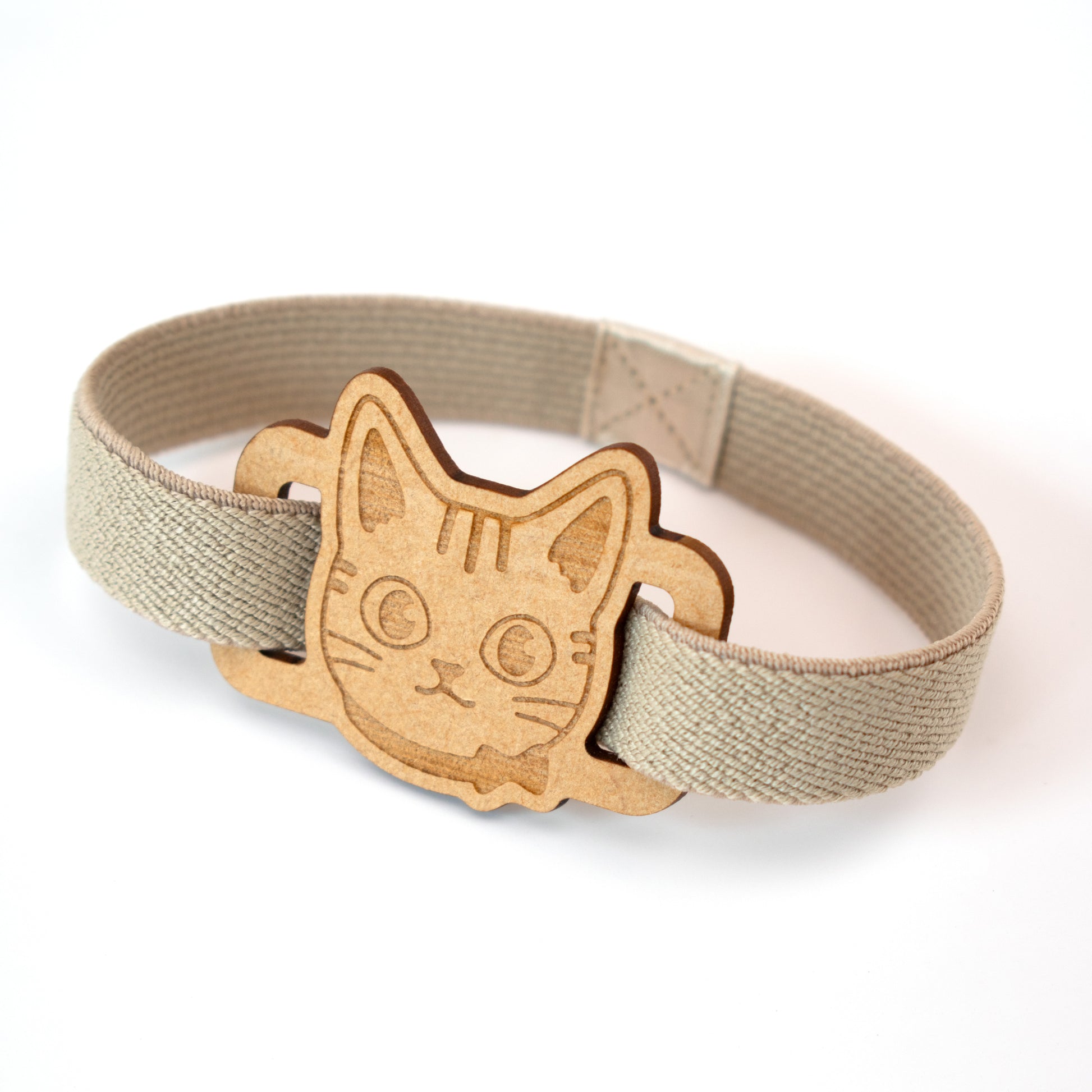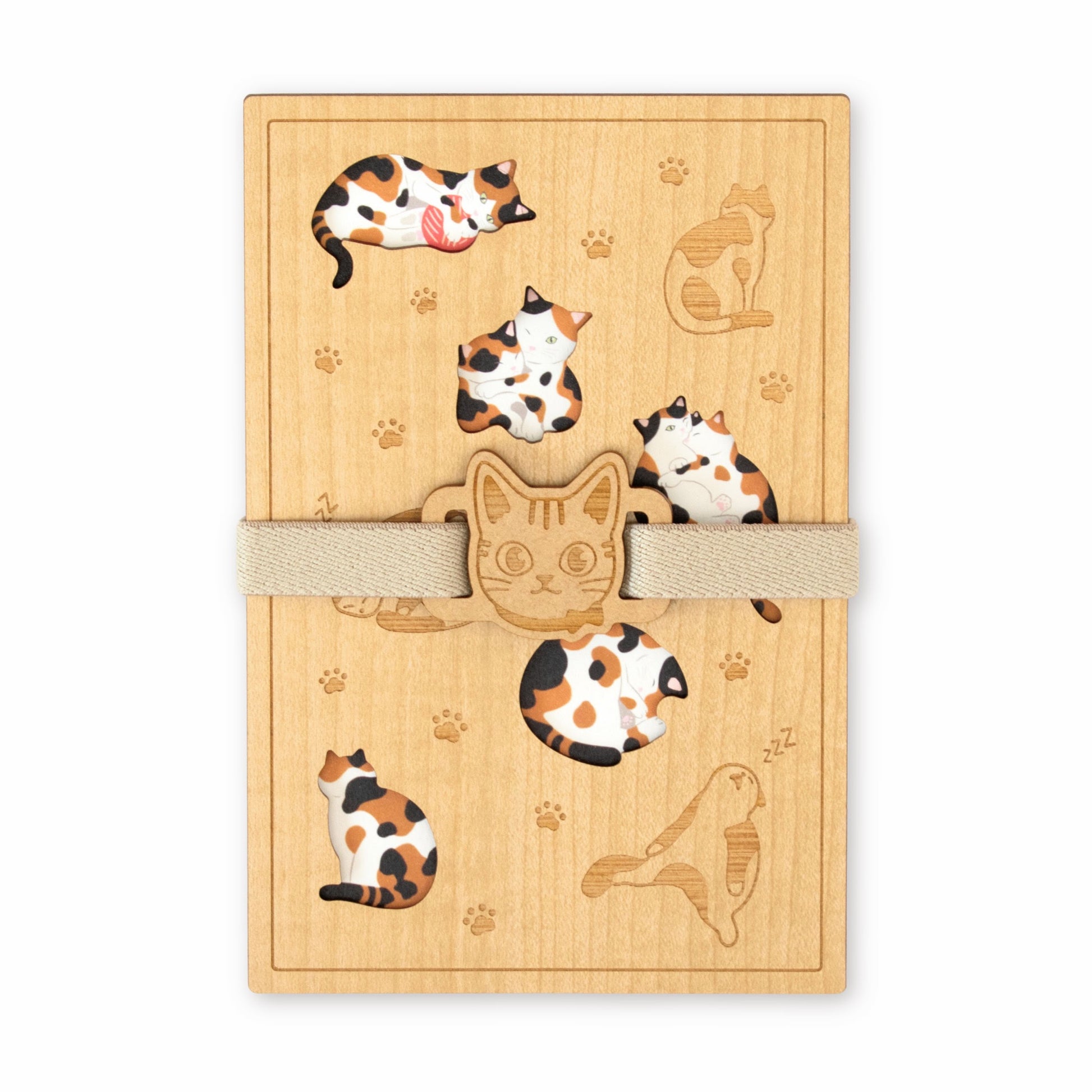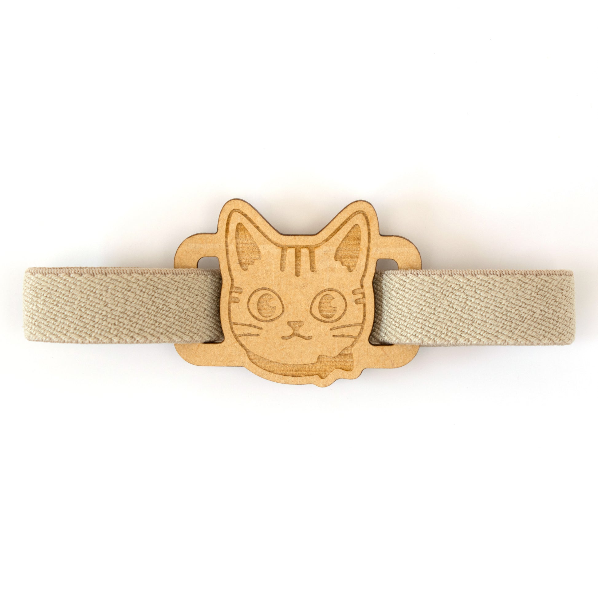 レーザー加工を施したパーツとカラフルなゴムの色が印象的な御朱印帳バンド。