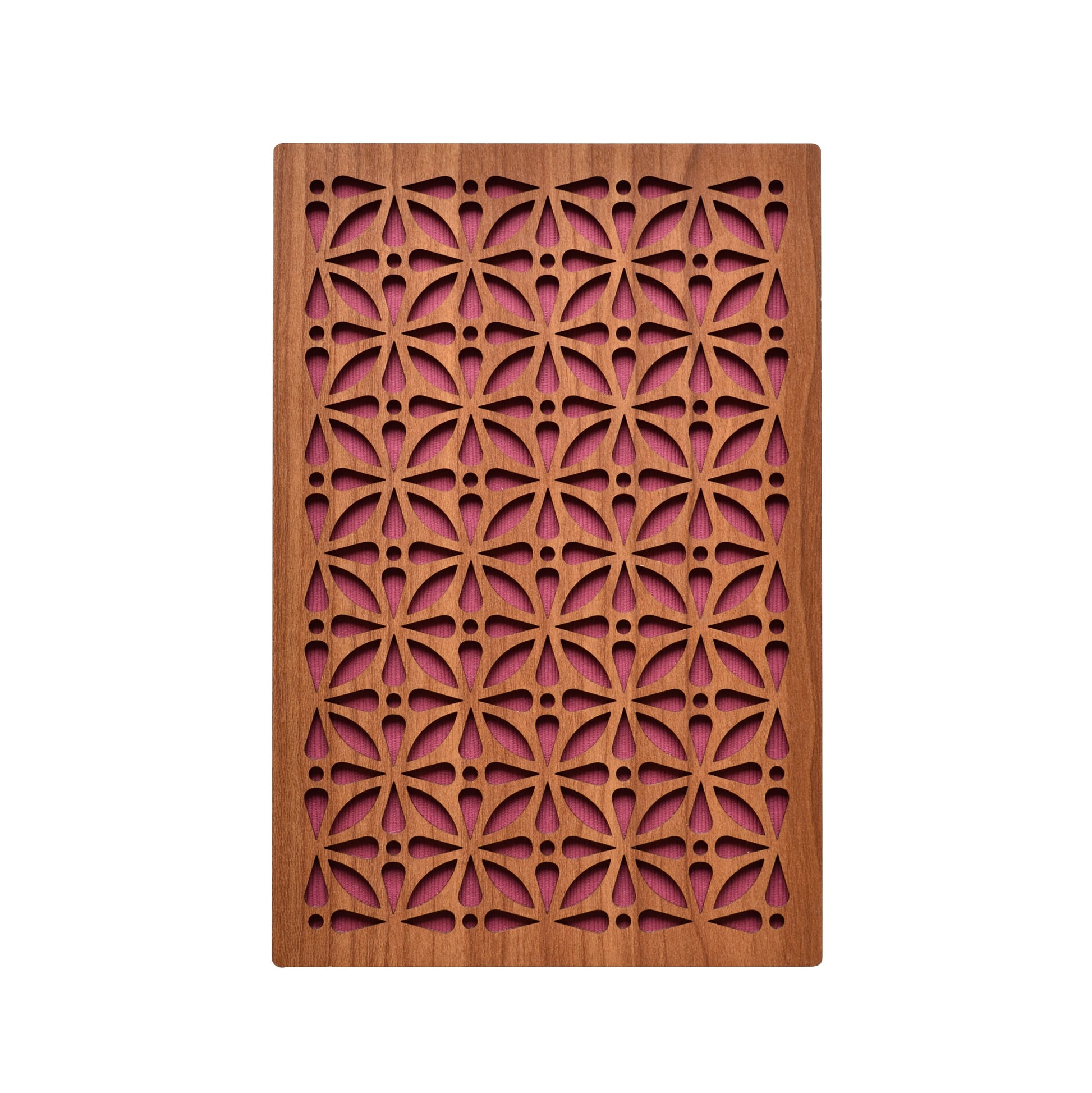 落ち着いた色合いの木製素材と紬柄の合わせ紙を組み合わせたシックなデザインです。